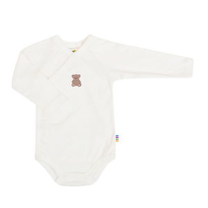 Joha omslagsbody i hvit med søtt bamsetrykk – myk komfort for din baby