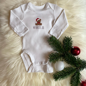 Denne julebodyen er perfekt til barnets første jul. Du kan velge mellom "min første jul" eller "mi første jul".